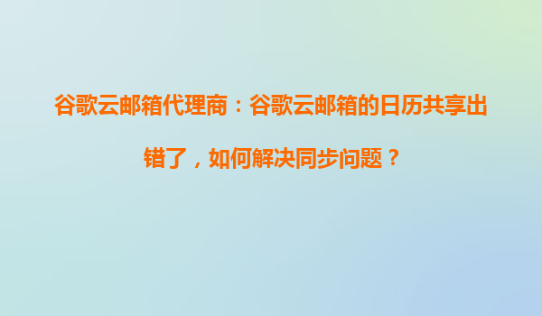 2025-10-20谷歌云郵箱代理商:如何解決谷歌云郵箱日歷共享同步問題? 引言 谷歌云郵箱(Gmail)作為全球領先的企業級郵箱服務,憑借其強大的功能和高度的可靠性,成為眾多企業的首選。然而,在...