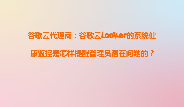 2025-10-20谷歌云代理商:Looker系統健康監控如何提醒管理員潛在問題 一、谷歌云的核心優勢 谷歌云(GoogleCloud)作為全球領先的云計算服務平臺,憑借其強大的基礎設施、數據分析和人工智能能力...