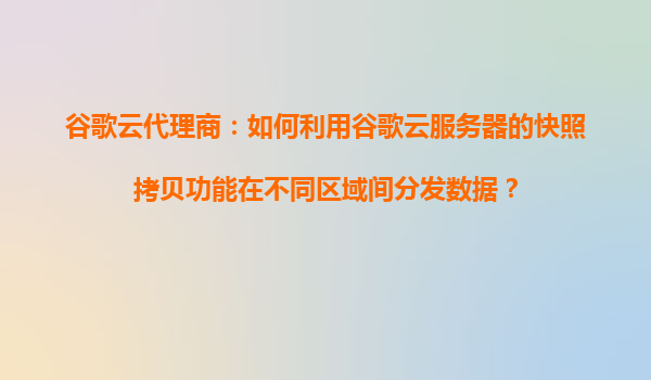 2025-10-20谷歌云代理商的快照拷貝功能:跨區域數據分發的利器 在當今全球化的商業環境中,企業往往需要在不同地理位置部署應用程序和服務。作為谷歌云代理商,我們深知數據跨區域分發的重要性。谷歌云服務器提供的快照拷貝功...