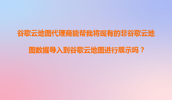 2025-11-21谷歌云地圖代理商能幫我將現(xiàn)有的非谷歌云地圖數(shù)據(jù)導(dǎo)入到谷歌云地圖進(jìn)行展示嗎? 一、谷歌云地圖代理商的角色與能力 谷歌云地圖代理商是經(jīng)過(guò)谷歌官方認(rèn)證的服務(wù)提供商,具備專業(yè)的技術(shù)能力和豐富的行業(yè)經(jīng)驗(yàn)...