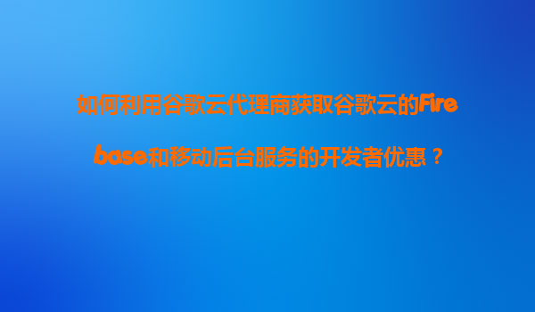2025-11-07如何利用谷歌云代理商獲取谷歌云的Firebase和移動后臺服務的開發者優惠? 引言 谷歌云平臺(GCP)提供了強大的云基礎設施和開發工具,其中Firebase和移動后臺服務是開發者常用的組件。借助谷歌云代理商(GoogleClo...