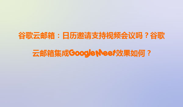 2025-04-03谷歌云郵箱與GoogleMeet的無縫集成 谷歌云郵箱(Gmail)與GoogleMeet的深度整合,重新定義了現(xiàn)代辦公場景中的會議體驗。用戶無需切換平臺,可直接在日歷邀請中一鍵創(chuàng)建或加入視頻會議,這種無縫...
