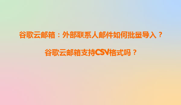 2025-04-03谷歌云郵箱的外部聯(lián)系人批量導(dǎo)入功能 谷歌云郵箱(GoogleWorkspace)作為全球領(lǐng)先的企業(yè)級郵件服務(wù)平臺,不僅提供高效的郵件管理能力,還支持用戶通過多種方式優(yōu)化聯(lián)系人管理。其中,批量導(dǎo)入外部聯(lián)系人功...