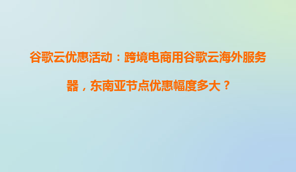 2025-04-03谷歌云東南亞節(jié)點優(yōu)惠活動:助力跨境電商高效出海 一、谷歌云的核心優(yōu)勢與跨境電商的契合點 作為全球前三的云計算服務(wù)商,谷歌云憑借其強大的技術(shù)實力和全球化基礎(chǔ)設(shè)施網(wǎng)絡(luò),為跨境電商企業(yè)...