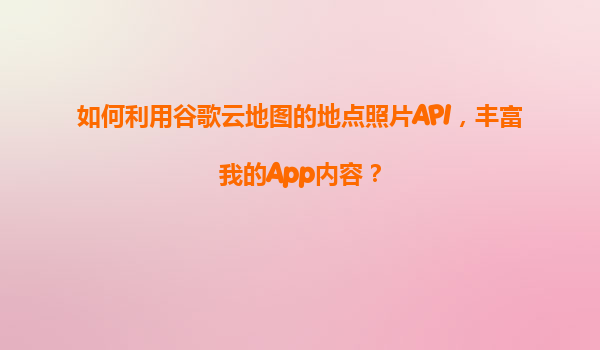 2025-11-05如何利用谷歌云地圖的地點照片API,豐富你的App內容 在當今移動應用競爭激烈的市場中,提供豐富、動態和視覺吸引人的內容至關重要。谷歌云地圖的地點照片API(PlacesPhotosAPI)是一個強大的工具,可以幫助開發...