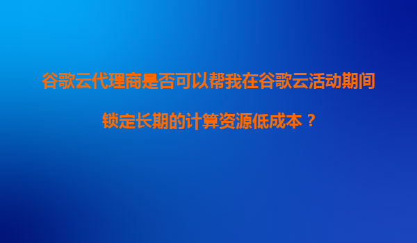 谷歌云代理商是否能在活動期間鎖定長期計算資源低成本?深度解析 一、谷歌云的核心優勢與資源定價機制 要回答這個問題,首先需要了解谷歌云的三大核心定價優勢: 承諾使用折扣(CommittedUseDiscounts...