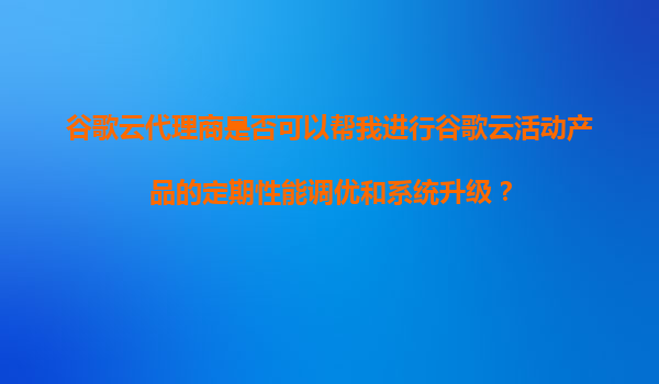 2025-11-05谷歌云代理商是否能提供定期性能調優與系統升級服務? 一、谷歌云代理商的核心服務范圍 谷歌云官方代理商通常提供包括技術咨詢、資源采購、賬單優化等基礎服務,部分具備技術實力的代理商還提供增值服...