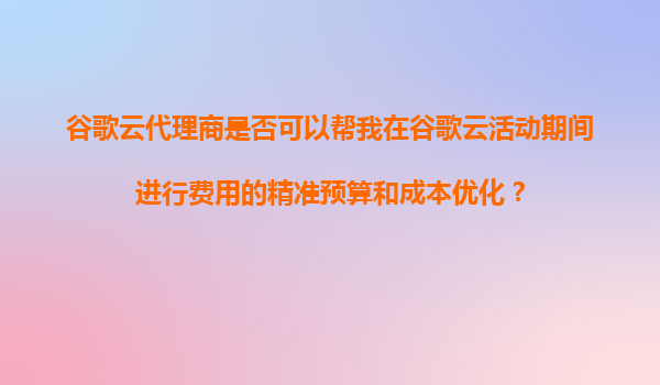 2025-11-05谷歌云代理商如何助力活動期間精準預算與成本優化 在數字化轉型浪潮中,企業上云已成為提升競爭力的關鍵。作為全球領先的云服務提供商,谷歌云以其強大的技術實力和靈活的計費模式,為企業提供了高效、安全的云端解...
