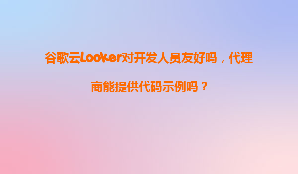 2025-11-04谷歌云Looker對開發人員友好嗎?代理商能否提供代碼示例? 引言:Looker作為數據分析工具的核心價值 隨著企業對數據驅動決策的需求增長,谷歌云旗下的Looker因...