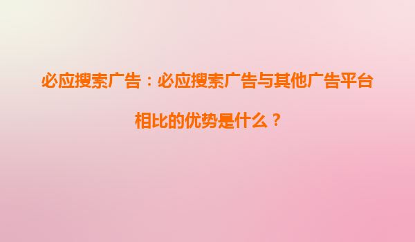 2025-08-28必應搜索引擎競價推廣優勢解析與標題內容深度分析 一、必應搜索引擎的市場定位與用戶群體 必應(Bing)作為微軟旗下的核心搜索引擎,在全球搜索市場中占據重要地位,尤其在北美和歐洲企業級用戶中滲透率較...