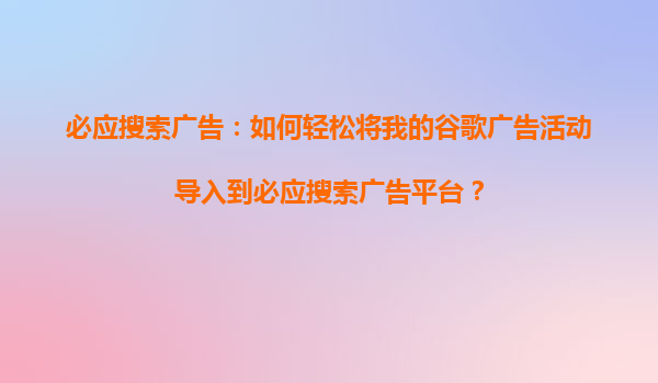 2025-11-01引言:競價推廣的競爭本質 搜索引擎競價推廣(如必應搜索廣告)的核心是通過關鍵詞競價爭奪用戶注意力。標題作為廣告的第一觸點,其質量直接影響點擊率(CTR)、轉化成本和推廣效果。本文將結合必應搜索廣...