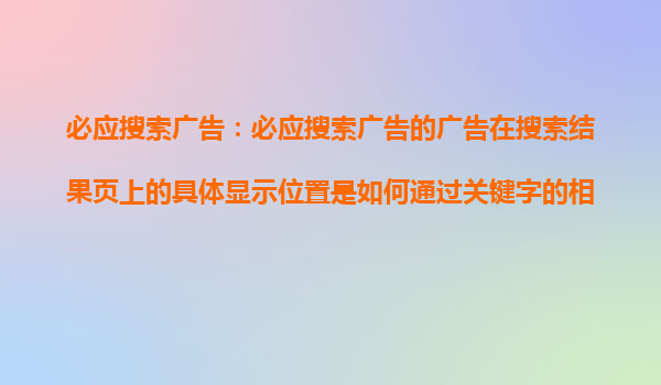 必應搜索引擎競價推廣優勢及標題內容分析 一、必應競價推廣的核心優勢 必應搜索引擎(Bing)作為全球第二大搜索引擎,在競價廣告領域具有獨特的市場價值。其核心優勢主要體現在以下幾個方面:首先...