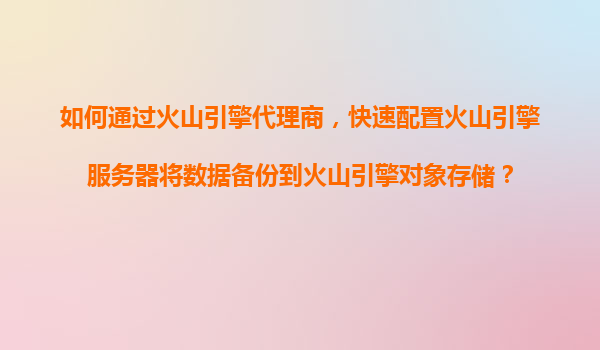 2025-11-14如何通過火山引擎代理商,快速配置火山引擎服務器將數(shù)據(jù)備份到火山引擎對象存儲? 一、火山引擎的核心優(yōu)勢 火山引擎作為字節(jié)跳動旗下的云服務品牌,具備以下核心優(yōu)勢: 高性能架構(gòu):基于全球化基礎(chǔ)設(shè)施,提供低...