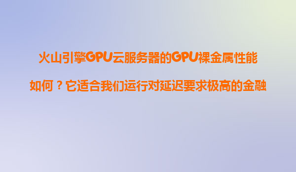 2025-11-10火山引擎GPU云服務(wù)器的GPU裸金屬性能解析及金融計算應(yīng)用評估 一、火山引擎GPU裸金屬服務(wù)器核心技術(shù)解析 1.1硬件架構(gòu)優(yōu)勢 火山引擎的GPU裸金屬服務(wù)器采用以下創(chuàng)新設(shè)計: 零虛擬...