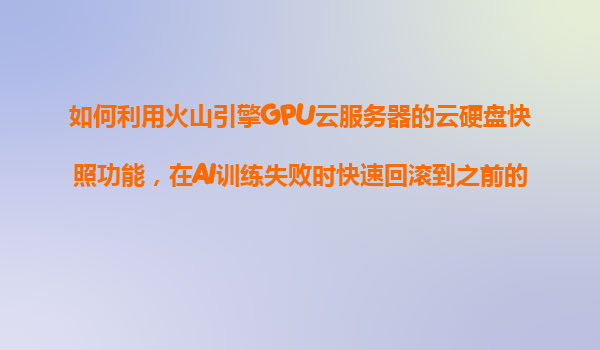 2025-11-10如何利用火山引擎GPU云服務(wù)器的云硬盤快照功能,在AI訓(xùn)練失敗時快速回滾到之前的狀態(tài) 在AI開發(fā)領(lǐng)域,訓(xùn)練過程往往需要耗費大量時間和計算資源。由于訓(xùn)練環(huán)境的復(fù)雜性、代碼錯誤或數(shù)據(jù)問題,AI訓(xùn)練失敗的情況時...