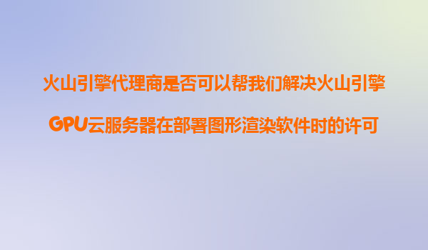 2025-11-10火山引擎代理商如何解決GPU云服務(wù)器部署圖形渲染軟件的許可證問題? 引言:許可證問題的挑戰(zhàn) 在云計算領(lǐng)域,企業(yè)使用GPU云服務(wù)器部署圖形渲染軟件(如Maya、3dsMax、UnrealEngine...