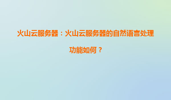 2025-04-02火山云服務器:自然語言處理功能解析與核心優勢 一、火山云自然語言處理的核心能力 火山云服務器(VolcanoEngine)作為字節跳動旗下的云計算服務平臺,其自然語言處理(NLP)功能依托于字節...