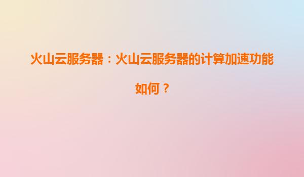 火山云服務器:計算加速功能的核心優勢與應用價值 一、火山云服務器的計算加速能力解析 火山云服務器(VolcanooCloud)作為火山引擎旗下的核心云計算服務,其計算加速功能通過軟硬件協同設計實現了技...