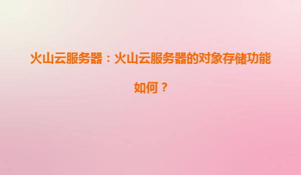 2025-04-01火山云服務器對象存儲功能解析:火山引擎與代理商的協同優勢 一、火山云服務器對象存儲的核心能力 火山引擎作為字節跳動旗下的云服務平臺,其對象存儲(TOS,To...