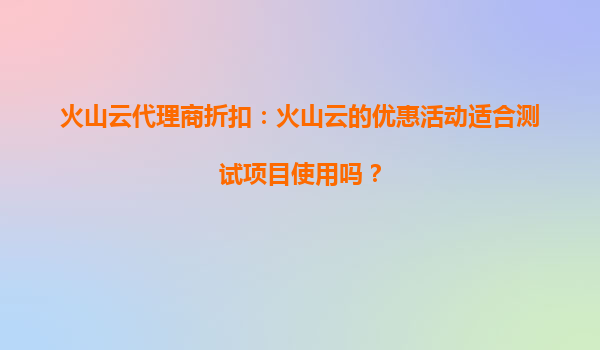 火山云代理商折扣:火山云的優惠活動適合測試項目使用嗎?