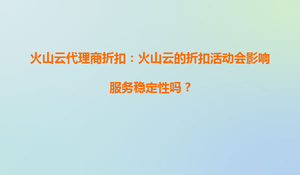 火山云代理商折扣:火山云的折扣活動會影響服務穩定性嗎?