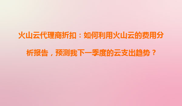2025-11-01火山云代理商折扣:如何利用火山云的費用分析報告預測下一季度云支出趨勢 一、火山云的競爭優勢 作為國內領先的云計算服務提供商,火山云憑借以下核心優勢為企業客戶提供高性價比服務: ...