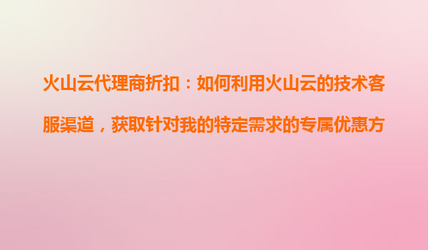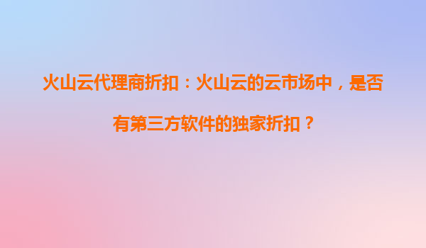 2025-11-01火山云代理商折扣:火山云云市場中的第三方軟件獨家折扣解析 在當今快速發展的云計算領域,企業越來越依賴云服務提供商來滿足其IT基礎設施的需求。火山云作為國內領先的云服務提供商之一,不僅提供穩定、高...