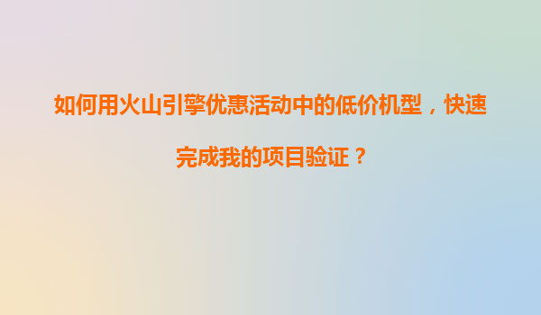 2025-11-03如何利用火山引擎優惠活動中的低價機型快速完成項目驗證 一、項目驗證的常見痛點 在項目開發初期,尤其是創業團隊或個人開發者,通常會面臨以下挑戰: ...