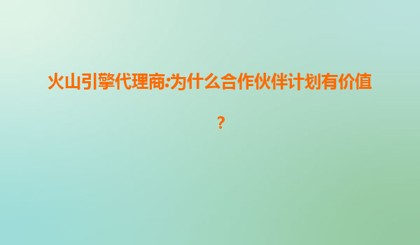 火山引擎代理商:為什么合作伙伴計劃有價值?