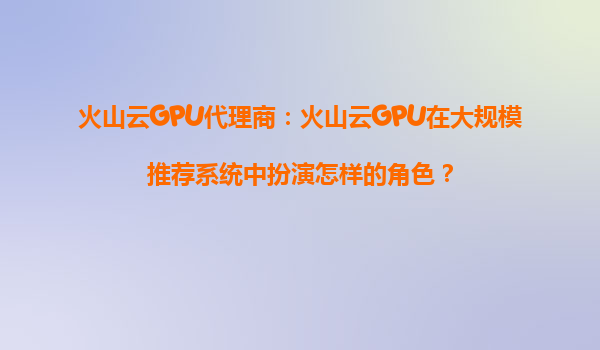 火山云GPU代理商:火山云GPU在大規模推薦系統中扮演怎樣的角色?