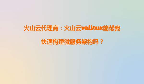 火山云代理商:火山云veLinux能幫我快速構建微服務架構嗎?