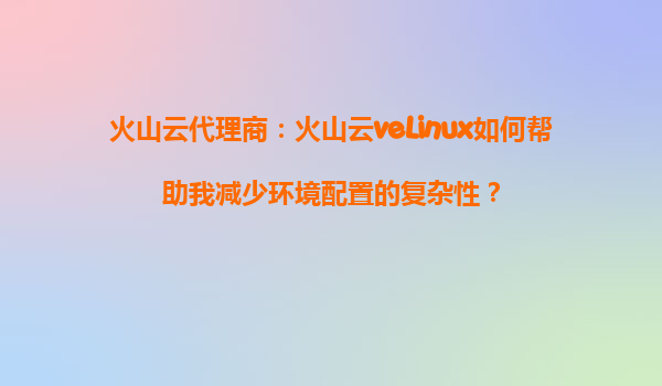 火山云代理商:火山云veLinux如何幫助我減少環境配置的復雜性?