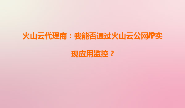 火山云代理商:如何通過火山云公網IP實現高效應用監控?