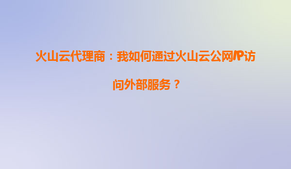 火山云代理商指南:如何通過火山云公網IP訪問外部/IP訪問外部服務