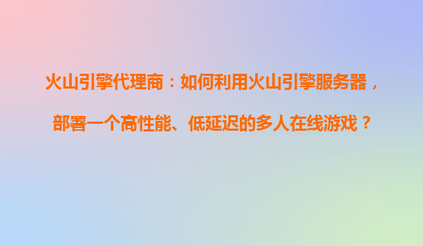 火山引擎代理商:如何利用火山引擎服務器,部署一個高性能、低延遲的多人在線游戲?