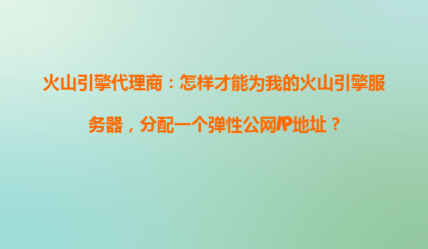 火山引擎代理商指南:輕松為服務器分配彈性公網IP