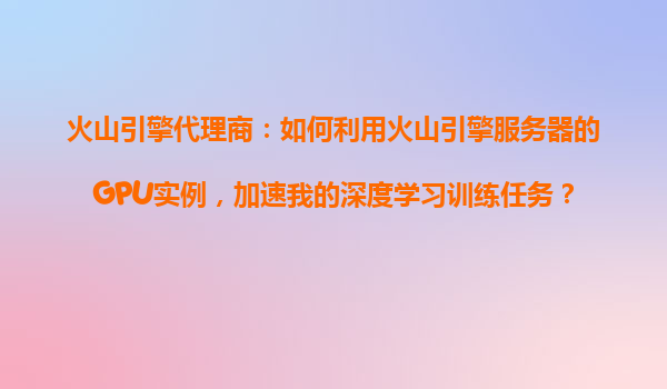 火山引擎代理商:如何利用火山引擎服務器的GPU實例,加速深度學習訓練任務?