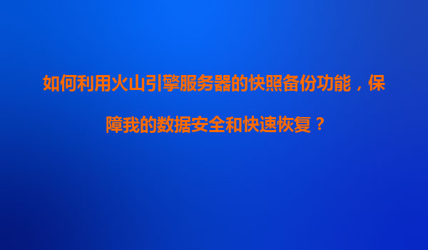 如何利用火山引擎服務器的快照備份功能,保障數據安全與快速恢復?