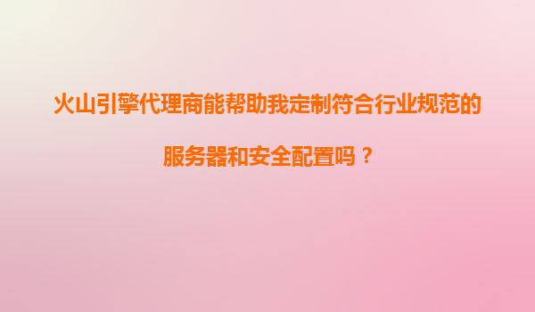 火山引擎代理商如何助力企業定制符合行業規范的服務器與安全配置
