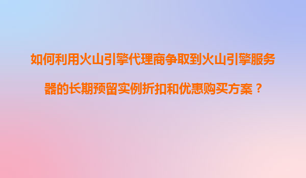 如何利用火山引擎代理商爭取到火山引擎服務器的長期預留實例折扣和優惠購買方案?