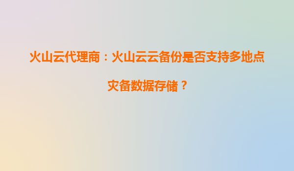 火山云代理商:火山云云備份是否支持多地點災備數據存儲? 引言:數據災備的核心需求與挑戰 在數字化轉型加速的今天,企業數據的可靠性與業務連續性成為關鍵訴求。多地點災備(Multi-SiteDisasterRecovery)通過...