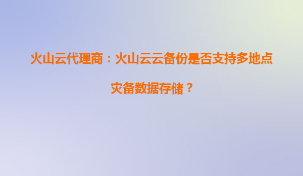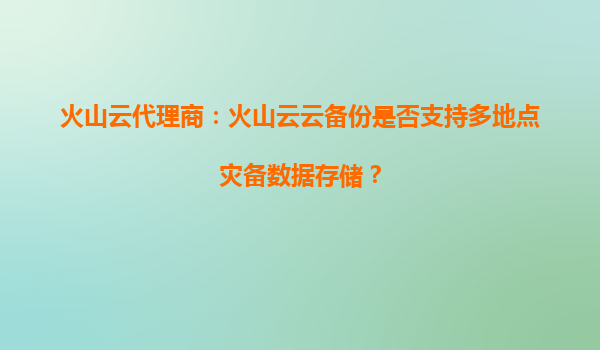 火山云代理商:火山云云備份是否支持多地點災備數據存儲? 引言:數據災備的核心需求與挑戰 在數字化轉型加速的今天,企業數據的可靠性與業務連續性成為關鍵訴求。多地點災備(Multi-SiteDisasterRecovery)通過...