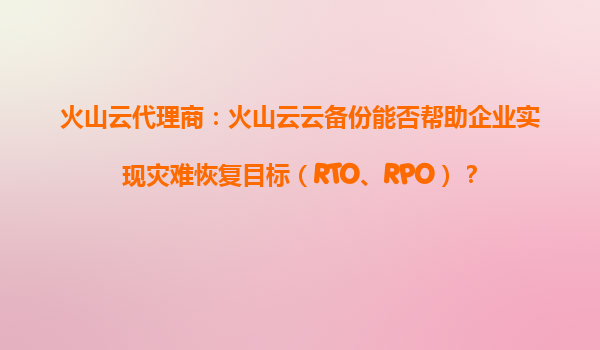 2025-09-17火山云代理商:火山云云備份能否幫助企業實現災難恢復目標(RTO、RPO)? 一、RTO與RPO:企業災難恢復的核心指標 在數字化轉型的今天,企業對業務連續性的要求日益嚴格。災難恢復(DisasterRecovery...