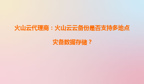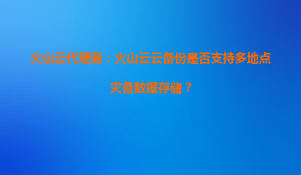 火山云代理商:火山云云備份是否支持多地點災備數據存儲? 引言:數據災備的核心需求與挑戰 在數字化轉型加速的今天,企業數據的可靠性與業務連續性成為關鍵訴求。多地點災備(Multi-SiteDisasterRecovery)通過...