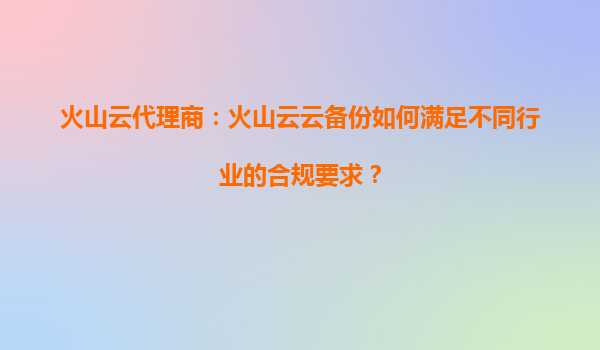 2025-09-16火山云代理商:火山云云備份如何滿足不同行業的合規要求? 引言 在數字化轉型的浪潮中,數據安全與合規性已成為企業選擇云服務的關鍵考量因素。火山云(VolcanoEngine)作為字節跳動旗下的云計算...