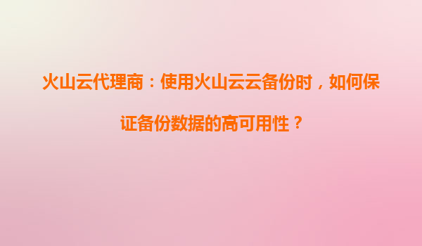 2025-09-16火山云代理商指南:確保備份數據高可用性的策略與實踐 一、引言:備份數據高可用性的重要性 在數字化轉型的浪潮中,數據已成為企業的核心資產。數據備份是保障業務連續性的最后防線,而備份數據的...