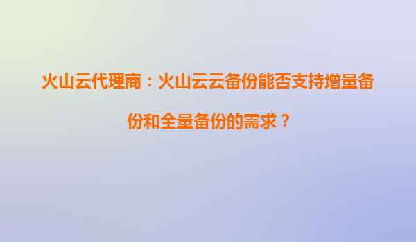2025-09-16火山云代理商指南:火山云備份如何滿足增量與全量備份需求 在數字化轉型的浪潮中,數據已成為企業最寶貴的資產之一。確保數據安全、可靠且高效地備份,是每家企業IT戰略的核心環節。作為火山引...