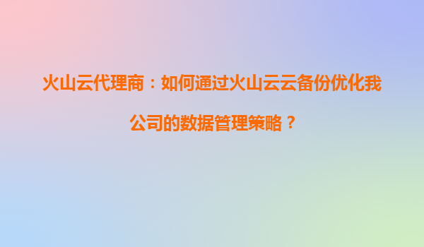 2025-09-16火山云代理商:如何通過火山云云備份優化我公司的數據管理策略? 引言 在當今數據驅動的商業環境中,企業對數據管理的需求日益增長。無論是數據的存儲還是備份、恢復,都需要高效且可靠的解決方...