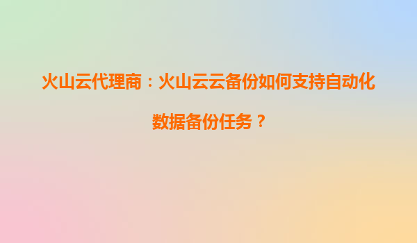 2025-09-16火山云代理商:火山云云備份如何支持自動化數據備份任務? 一、引言:數據備份的自動化需求 在數字化時代,企業數據的快速增長與安全管理成為核心挑戰。傳統手動備份方式已無法滿足高頻...