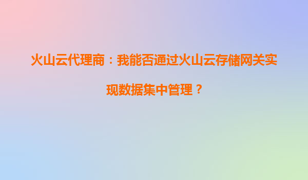 火山云代理商:我能否通過火山云存儲網關實現數據集中管理? 隨著企業數據量的激增,如何高效、安全地實現數據集中管理成為許多企業面臨的關鍵挑戰。作為火山引擎的代理商,經常會被客戶詢問:"是否可以通過...